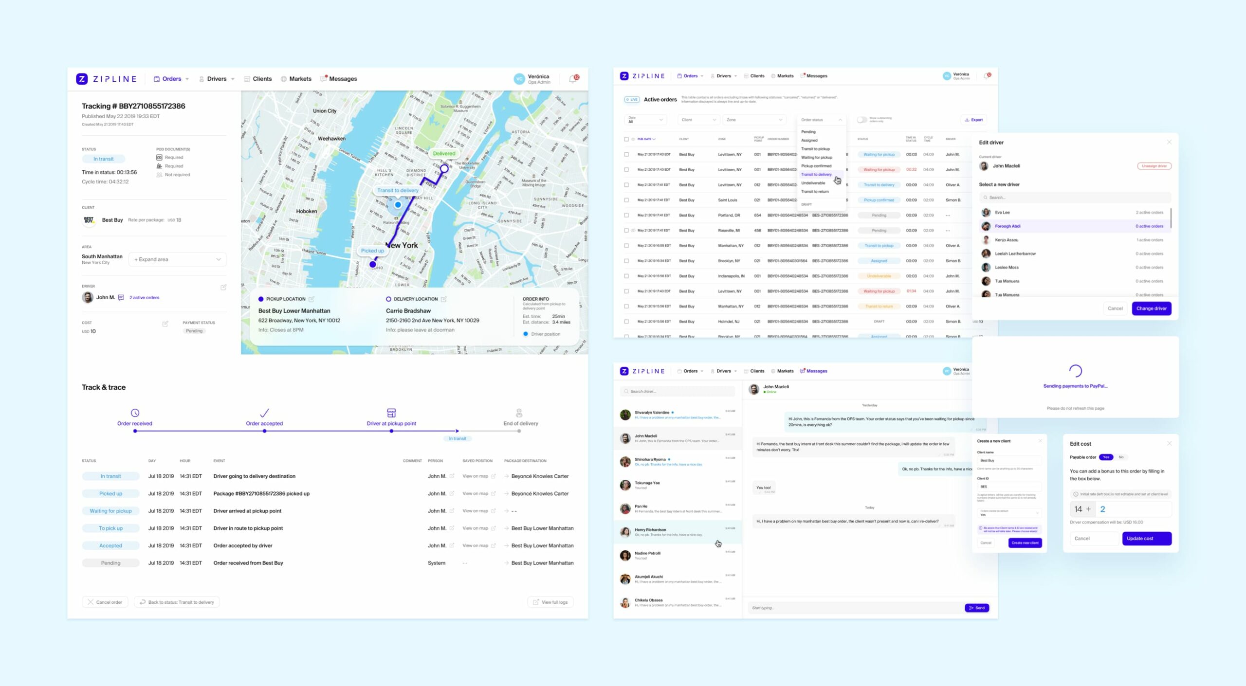 Help drivers pickup and deliver multiple orders at once with an « optimized route », multi-package pickup process, quick shortcuts to their preferred navigation app (Waze, Google Maps, Apple Maps), order details, consignee contact… and a clutter-free interface.